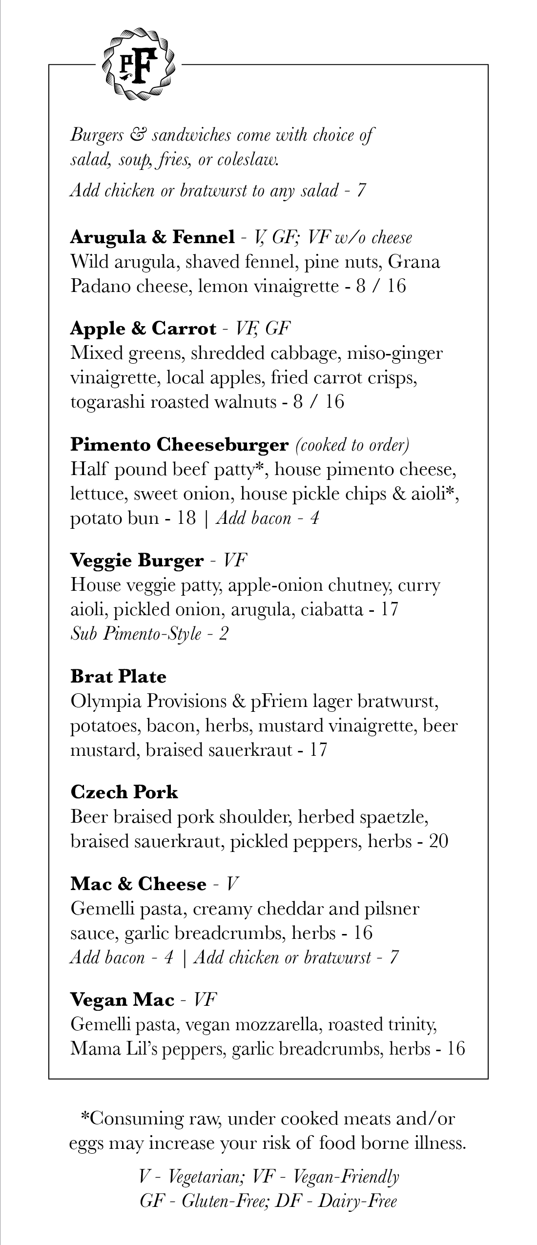 - Seasonal chef-selected menu (view here).